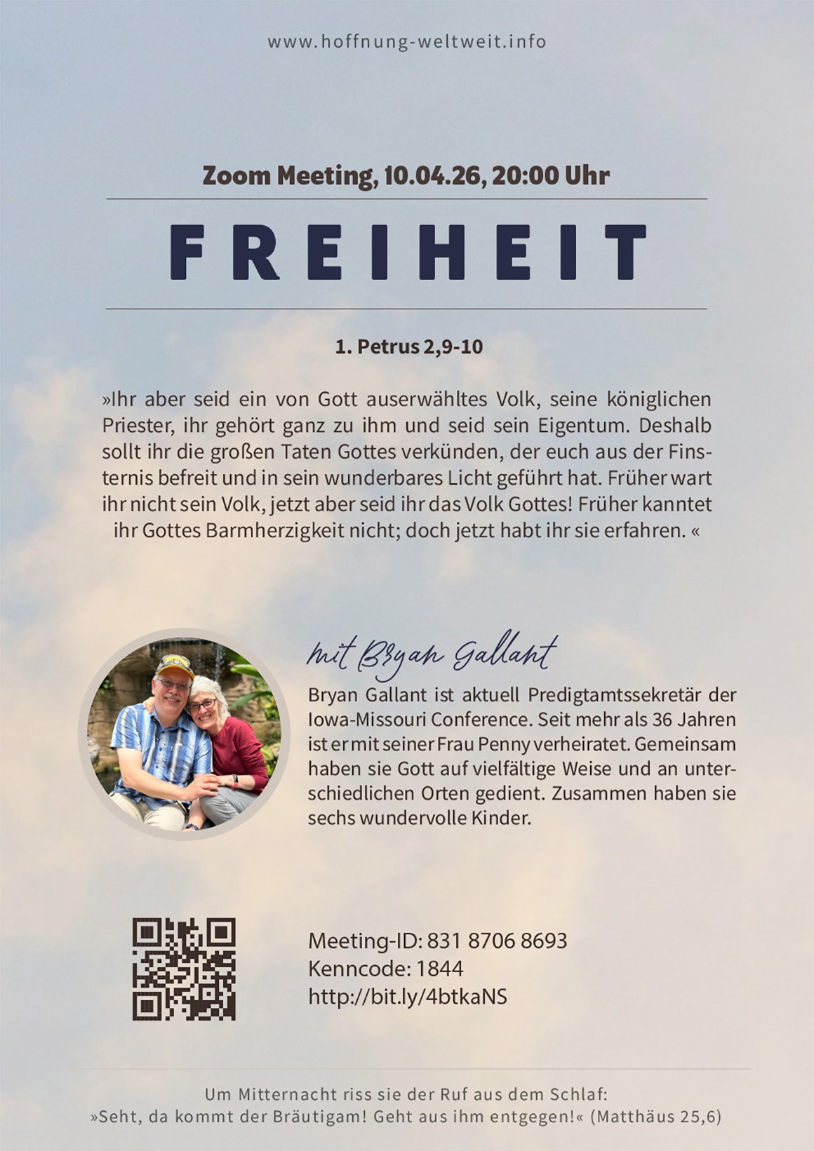 Zoom Meeting, 10.04.26, 20:00 Uhr mit Bryan Gallant